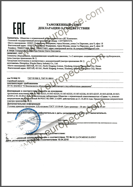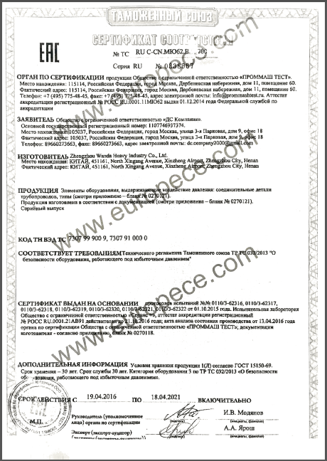 CU-TR認(rèn)證產(chǎn)品覆蓋萬達(dá)重工生產(chǎn)的彎管、法蘭等各類型產(chǎn)品,認(rèn)證證書的取得是俄白哈對(duì)萬達(dá)重工產(chǎn)品資料、安全標(biāo)識(shí)、產(chǎn)品性能的肯定,同時(shí)驗(yàn)證了萬達(dá)重工的產(chǎn)品質(zhì)量又邁上了一個(gè)更高的臺(tái)階。近年來,我公司積極開拓海外市場(chǎng),把擴(kuò)大國際市場(chǎng)作為重要的發(fā)展戰(zhàn)略,此次CU-TR認(rèn)證證書的取得,為我司進(jìn)一步開拓歐洲市場(chǎng)提供了強(qiáng)有力的保證。