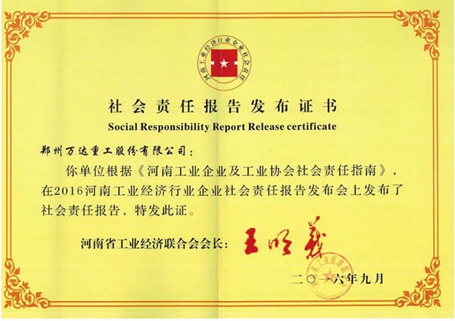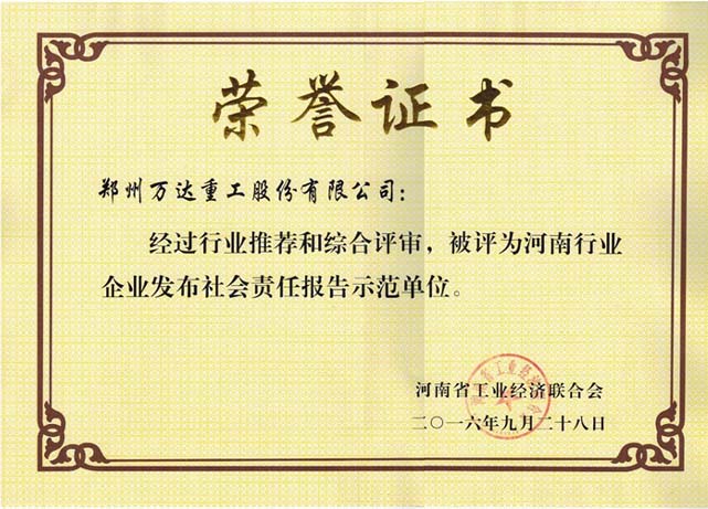 熱烈祝賀鄭州萬達(dá)重工股份有限公司獲得“河南行業(yè)企業(yè)發(fā)布社會(huì)責(zé)任報(bào)告示范單位”榮譽(yù)稱