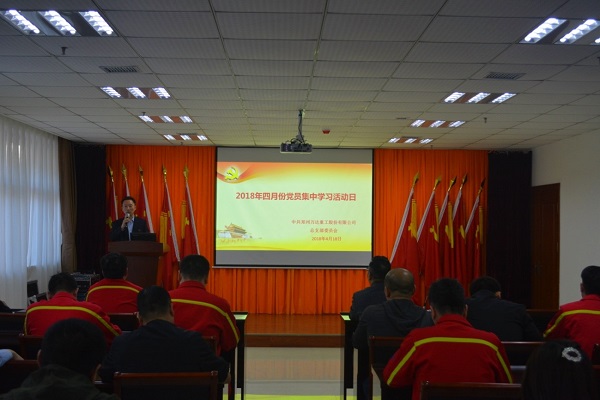2018年4月18日下午,鄭州萬達重工股份有限公司黨總支在集團綜合樓二樓黨建基地開展了2018年度4月份“黨員集中活動日”活動。黨總支全體黨員、入黨積極分子、入黨申請人共有40余人參加了此次活動。