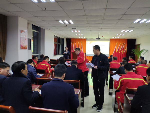 該次學(xué)習活動由萬達重工黨總支副書記于江山同志主持,共有五項議程。會議開始,首先全體參會人員共唱國歌;接著黨總支書記何清同志帶領(lǐng)大家重溫入黨誓詞;然后萬達重工子公司黨支部書記李懷剛同志對其黨支部的2名預(yù)備黨員轉(zhuǎn)正式黨員情況進行了匯報;接下來召開了萬達重工黨支部黨員大會,大會討論并投票選舉通過2名發(fā)展對象轉(zhuǎn)預(yù)備黨員決議;隨后分別由靳奎同志、劉超越同志、白笑棠同志、張夢珠同志帶領(lǐng)大家集中學(xué)習《中共鄭州市委關(guān)于以習近平新時代中國特色社會主義思想為指導(dǎo)全面推進黨的建設(shè)高質(zhì)量發(fā)展的實施意見》。