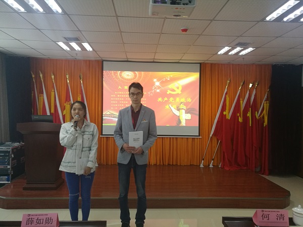 活動共有七項議程,會議開始,全體黨員共唱國歌,然后在黨總支何書記的領(lǐng)誓下,重溫入黨誓詞。隨后,觀看學(xué)習(xí)新聞聯(lián)播視頻《習(xí)近平在紀(jì)念五四運動100周年大會上的講話》和《關(guān)于在全區(qū)開展“支部強堡壘 黨員爭先鋒”活動實施方案》。之后,為5月份入黨的黨員過政治生日,何書記代表公司黨總支向黨員張夢珠、郝朝文贈送了書籍。過“政治生日”的兩名黨員分別分享了入黨以來的感思感想,表示將在今后學(xué)習(xí)、工作中發(fā)揮黨員的先鋒模范帶頭作用。