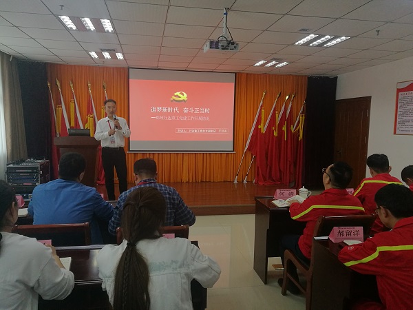 2019年5月14日下午,鄭州萬達重工股份有限公司黨總支在綜合行政樓二樓黨員活動室開展了2019年5月份“黨員集中活動日”學(xué)習(xí)活動。黨總支全體黨員、入黨積極分子、入黨申請人共計40余人參加了此次活動?;顒佑牲h總支紀(jì)律委員薛如勛主持。