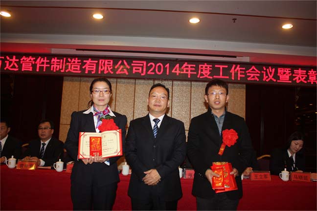 鄭州萬達管件制造有限公司2014年年會于2015年1月20日隆重召開。會議首先表彰了公司2014年度先進工作者、先進部門及班組、優(yōu)秀干部、年度進步之星、銷售冠軍、優(yōu)秀黨員等十余個獎項,并對獲獎者頒發(fā)了獎金和證書。公司董事長、黨委書記何清同志在會議上做了題為《適應新常態(tài) 開創(chuàng)新局面 實現(xiàn)公司持續(xù)健康穩(wěn)定發(fā)展 》的報告,總結(jié)了2014年公司的發(fā)展歷程,取得的成績和不足,展望和部署2015年公司發(fā)展的目標和重點工作,為公司全力建設五位一體的萬達事業(yè)指明了努力方向。公司全體人員中午舉行了盛大的團拜招待會,歡聚一堂,其樂融融。