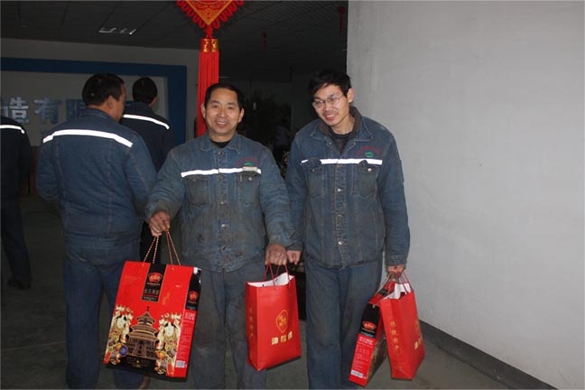 為感謝全體員工一年來(lái)的辛勤工作,祝福員工度過(guò)一個(gè)歡樂(lè)喜慶的新年,公司本著,一切以為員工謀福利的原則,為每位員工購(gòu)置了禮品(若羌大棗、稻花香金玉滿堂)。讓員工把公司溫暖帶回家。