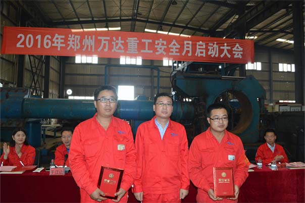 早上八點(diǎn)整,萬達(dá)重工“2016安全月啟動(dòng)大會(huì)”在公司公司一線----生產(chǎn)車間圓滿隆重召開。公司董事長、書記何清做《強(qiáng)化安全發(fā)展理念、提升全員安全素質(zhì)》講話,公司總經(jīng)理張付峰宣讀了《2016年“公司安全月”活動(dòng)實(shí)施方案》,公司總工程師、安全領(lǐng)導(dǎo)小組執(zhí)行組長袁希海作《公司上半年安全報(bào)告》講話,公司控股公司、子公司、生產(chǎn)方陣、營銷方陣、行政方陣分別派代表做會(huì)議發(fā)言。在安全月啟動(dòng)大會(huì)上,對(duì)公司2015年7月-2016年6月安全生產(chǎn)管理優(yōu)秀班組(機(jī)修電工班、無損檢測(cè)班)進(jìn)行了表彰,并且優(yōu)秀班組代表進(jìn)行了經(jīng)驗(yàn)分享。