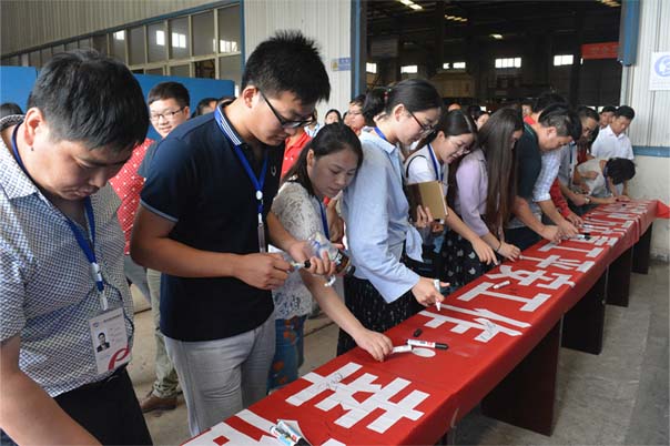 會(huì)后,公司領(lǐng)導(dǎo)及全體員工在“2016鄭州萬達(dá)重工平安工作•幸福生活”安全條幅上簽字留念。