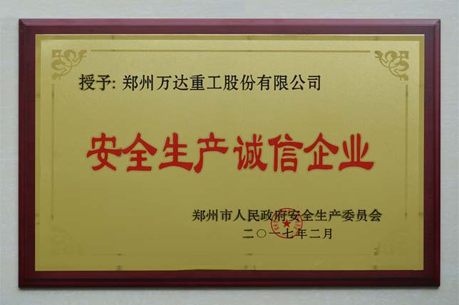 熱烈祝賀鄭州萬達重工股份有限公司榮獲鄭州市安全生產(chǎn)誠信企業(yè)