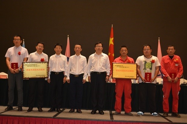 按照會(huì)議議程,大會(huì)對(duì)鄭州萬達(dá)科技發(fā)展有限公司、生產(chǎn)管理部金加工模塊頒發(fā)了“第六屆質(zhì)量月活動(dòng)先進(jìn)集體”榮譽(yù)獎(jiǎng)牌,向王明錄、孫鵬飛頒發(fā)了“第六屆質(zhì)量月活動(dòng)優(yōu)秀個(gè)人”榮譽(yù)證書并對(duì)丁西彬頒發(fā)了“中石油年度投標(biāo)工作優(yōu)秀個(gè)人”榮譽(yù)證書;并由丁西彬代表獲獎(jiǎng)人員致獲獎(jiǎng)感言,股份公司領(lǐng)導(dǎo)與先進(jìn)集體、優(yōu)秀個(gè)人進(jìn)行了合影留念。