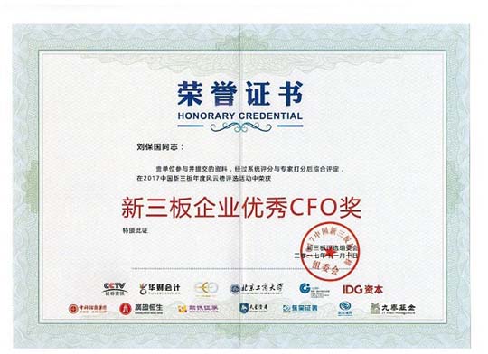 本次活動(dòng)依據(jù)華財(cái)新三板投資者保護(hù)指數(shù)、財(cái)務(wù)指標(biāo)等作為基本入圍條件,加上專家打分和網(wǎng)絡(luò)投票,歷經(jīng)3個(gè)多月最終確定獲獎(jiǎng)名單。鄭州萬(wàn)達(dá)重工股份有限公司憑借著深厚的文化底蘊(yùn),先進(jìn)的管理理念、精準(zhǔn)的財(cái)務(wù)數(shù)據(jù)等綜合實(shí)力榮獲“2017年中國(guó)新三板年度風(fēng)云榜”最佳公司治理獎(jiǎng);公司財(cái)務(wù)總監(jiān)劉保國(guó)先生憑借著專業(yè)的技術(shù)能力,優(yōu)秀的個(gè)人素養(yǎng)榮獲“2017年中國(guó)新三板”企業(yè)優(yōu)秀CFO獎(jiǎng)。