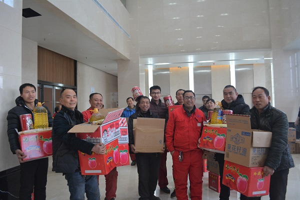 春節(jié)福利承載著萬達(dá)對(duì)員工殷切的祝福,每人長粒香五常大米5KG、多力菜籽油5L、蘋果一箱、新年糖一盒和春節(jié)禮金,祝萬達(dá)人家庭富足、美滿順意;一盒糖是祝萬達(dá)家人生活甜如蜜,一箱蘋果更是祝萬達(dá)家人平安快樂;春節(jié)禮金300-1500元根據(jù)每人的工齡進(jìn)行分級(jí)發(fā)放,領(lǐng)到禮品和禮金后,每個(gè)萬達(dá)人的臉上都洋溢著幸福甜蜜的微笑。臨近佳節(jié)發(fā)放禮品和禮金不僅營造了濃濃的節(jié)日氛圍,更體現(xiàn)了萬達(dá)重工“平安、悅享、幸福”的關(guān)愛文化,員工是萬達(dá)的第一大資產(chǎn),萬達(dá)用行動(dòng)訴說著對(duì)員工的關(guān)愛。