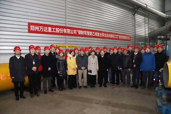 鋼制彎管聚乙烯復(fù)合帶全自動(dòng)纏繞工藝現(xiàn)場(chǎng)觀摩研討會(huì)在鄭州萬(wàn)達(dá)重工股份有限公司成功召開