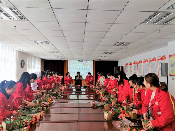 隨后,特邀的花藝講師為全體女職工進(jìn)行了一堂時尚、健康、環(huán)保的“慶三八”花藝培訓(xùn)?;顒蝇F(xiàn)場鮮花簇?fù)恚枷闼囊?,花藝?yán)蠋煆幕ú钠贩N、色彩搭配等方面生動形象地講解了插花基本知識、方法及插花技巧,現(xiàn)場演示了插花的整個制作過程。女職工在花藝師的指導(dǎo)下,邊看邊學(xué),邊交流邊探討,充分發(fā)揮自己的想象力,修剪花枝、整理花朵、構(gòu)思插花位置,將不同花材有層次地搭配在一起。不一會兒,一幅幅絢麗而生動的花藝作品相繼呈現(xiàn)在眼前,大家捧著親手插的花,臉上洋溢著滿滿的幸福。本次活動有效豐富了女職工的文化生活,讓女職工切身體驗了插花藝術(shù)帶來的樂趣,放松了身心,增強(qiáng)了彼此之間的交流,舒緩了工作壓力,享受了插花的樂趣和雅致,同時也讓大家感受到了企業(yè)這個大家庭的溫暖,大家共同度過了一個特色且有意義的節(jié)日。