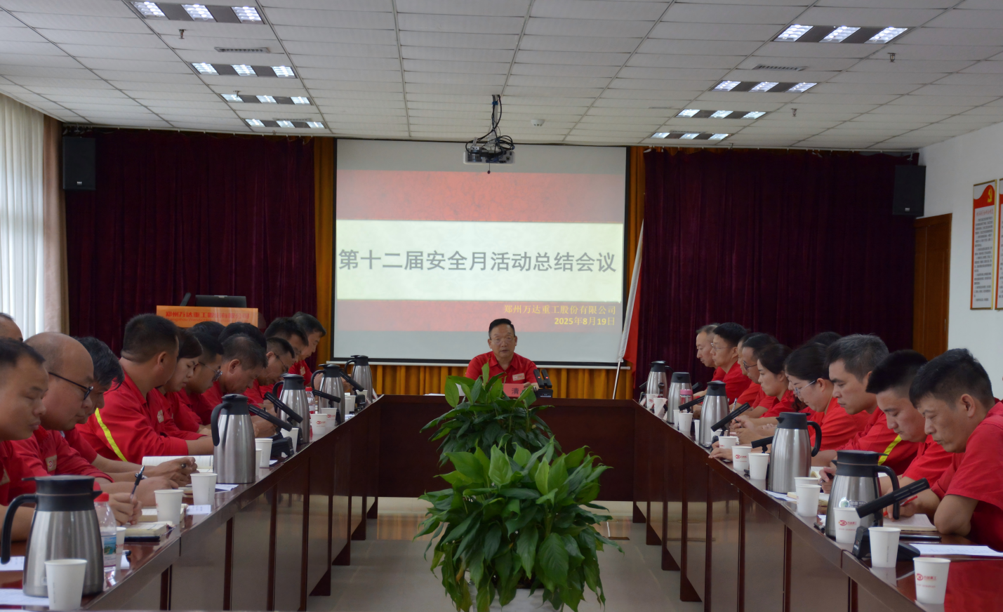 2025/08/20 1035 2025年8月19日下午,鄭州萬達(dá)重工股份有限公司在行政樓二樓會(huì)議室召開了股份公司第十二屆安全月活動(dòng)總結(jié)會(huì)議。股份公司黨委書記、董事長、活動(dòng)領(lǐng)導(dǎo)小組組長何清,安